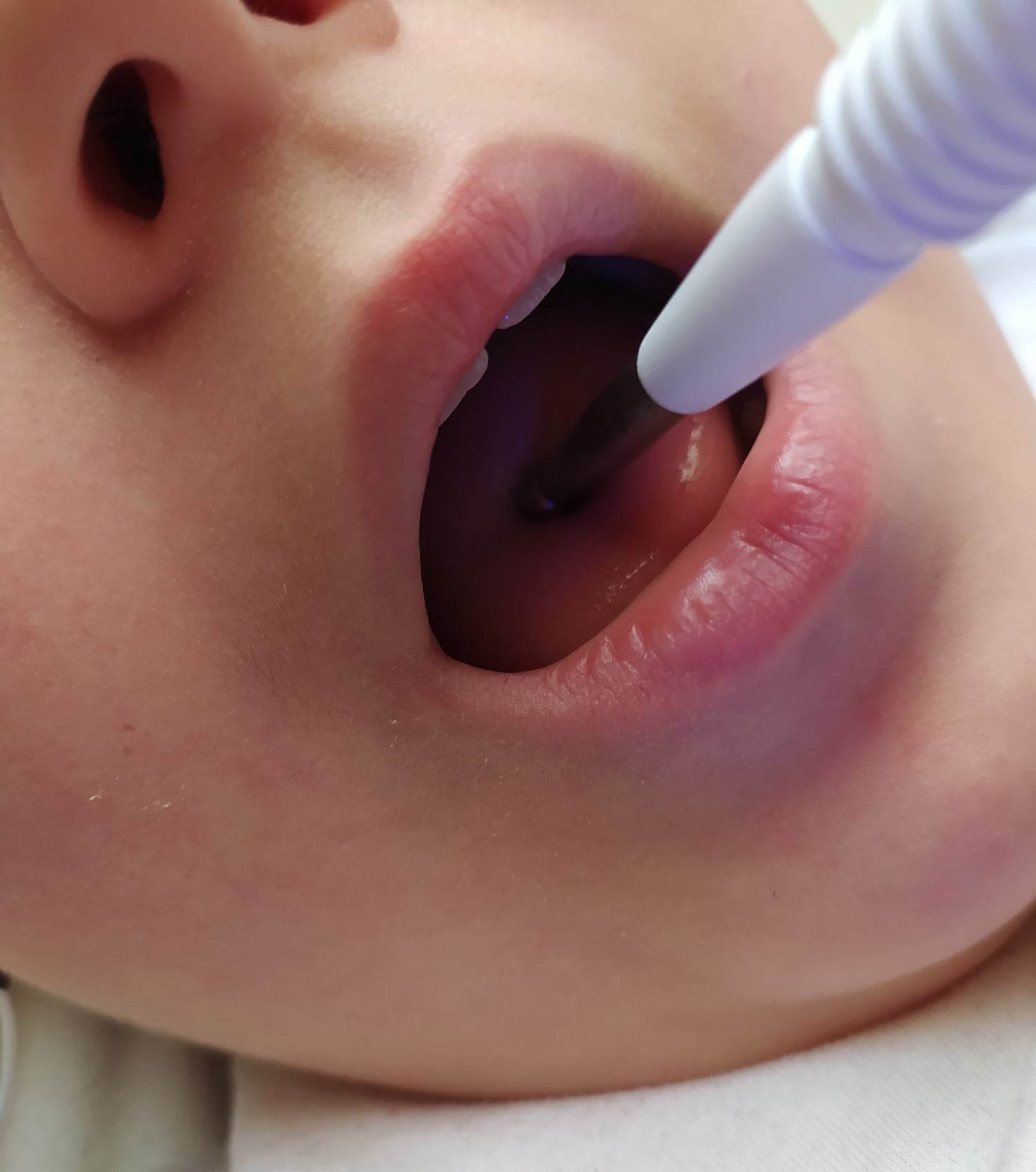 - wspomaganiu procesu połykania (infantylne połykanie, dysfagia)